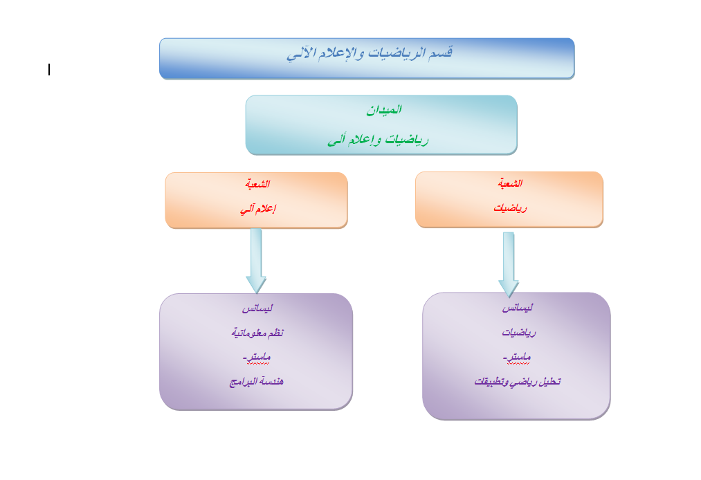 قسم الرياضيات و الاعلام الالي الميدانالشعبةليسانسماستررياضيات و إعلام آليرياضياترياضياتتحليل رياضي و تطبيقاتإعلام ألينظم المعلوماتيةهندسة البرمجيات و الأنظمة الموزعة
