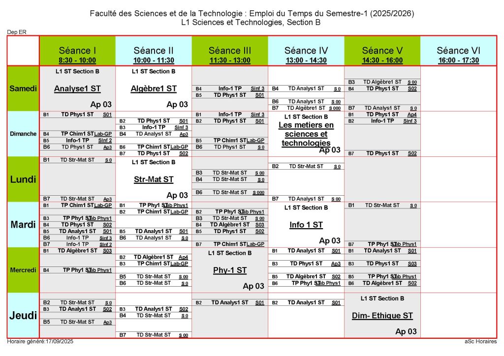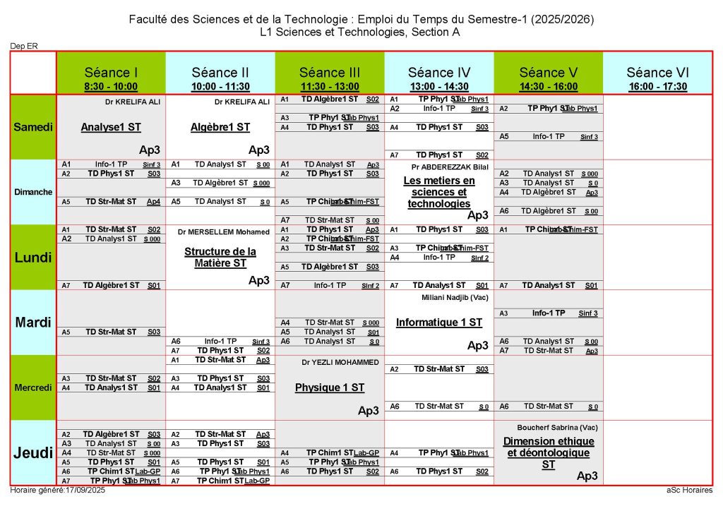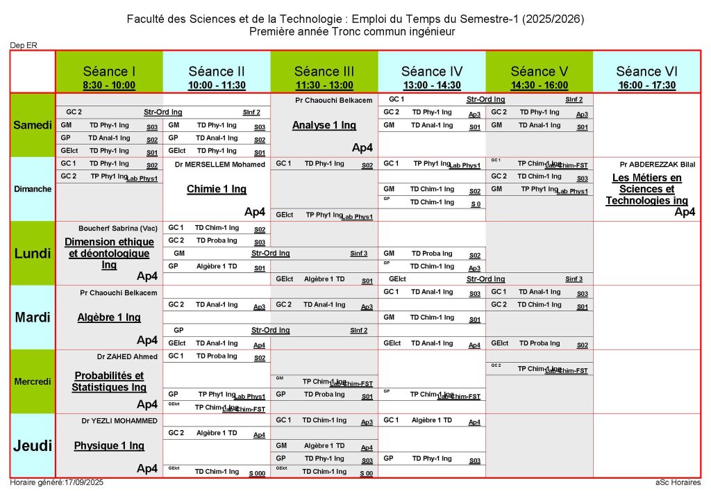 جداول توقيت طلبة السّنة الأولى علوم وتكنولوجيا وطلبة مسار مهندس