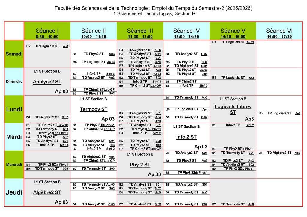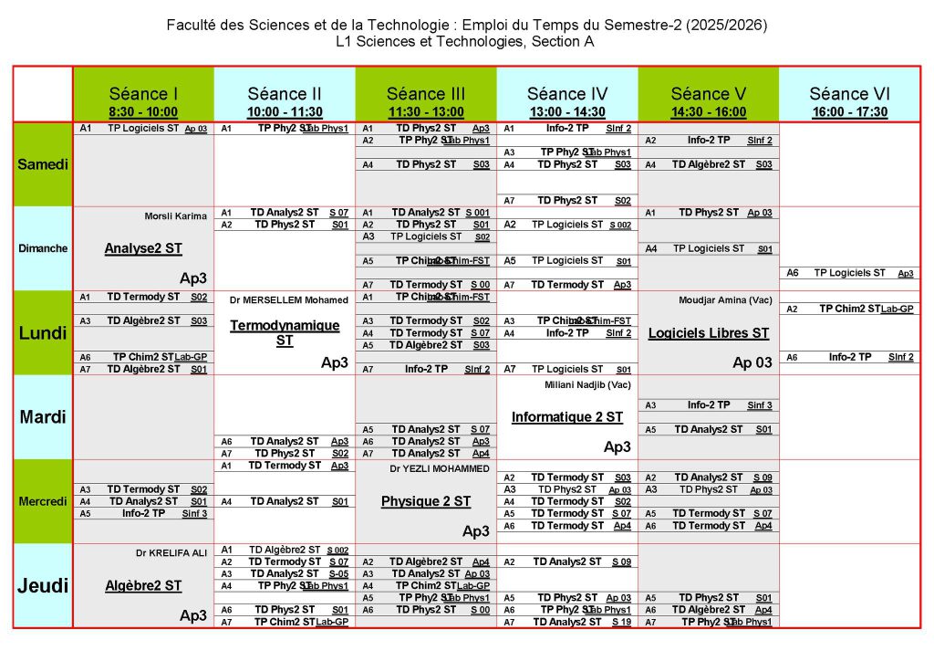جداول توقيت طلبة السّنة الأولى علوم وتكنولوجيا وطلبة مسار مهندس