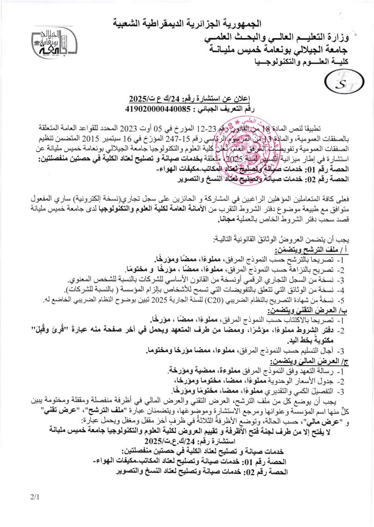 © All rights reserved to the Faculty of Science and Technology 2025. Djilali Bounaama University, Khemis Miliana.